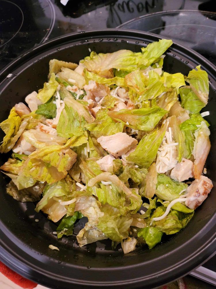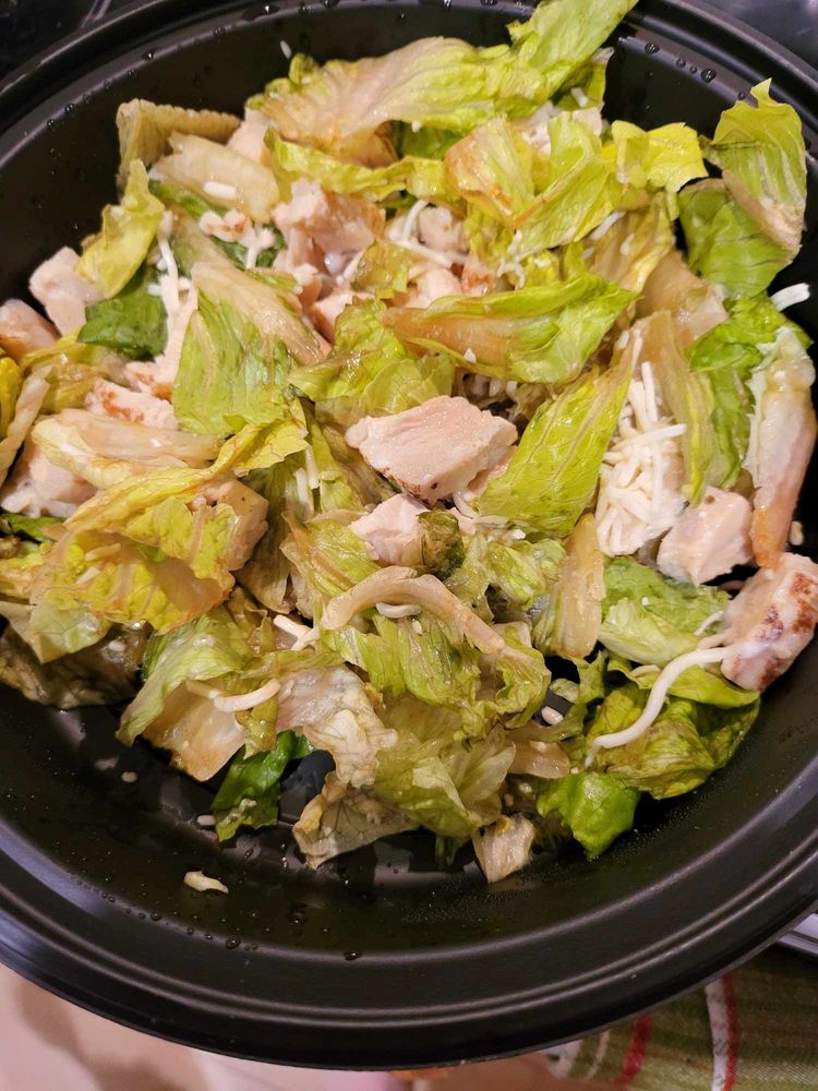 Romaine Lettuce topped with Grilled Chicken Breast Raised Without Antibiotics and Shredded Aged Parmesan Cheese. 190 calories.