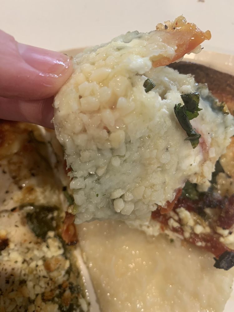 Our Original Crust topped with Creamy Garlic Sauce, Whole-Milk Mozzarella, Grilled Chicken Raised Without Antibiotics, Roma Tomatoes, Green Onions, Cheddar, and Herb & Cheese Blend